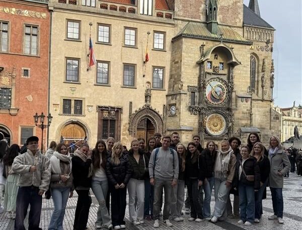 In dieser Woche erkunden 20 Schülerinnen und Schüler der Q1 gemeinsam mit Frau Simon und Herrn Kempe Prag. Mit einem Sprachkurs und Stadterkundungen werden die Kultur und die Geschichte erlebt. Der Künstler David Cerny und der Besuch der Prager Botschaft füllen dir weitere Zeit!